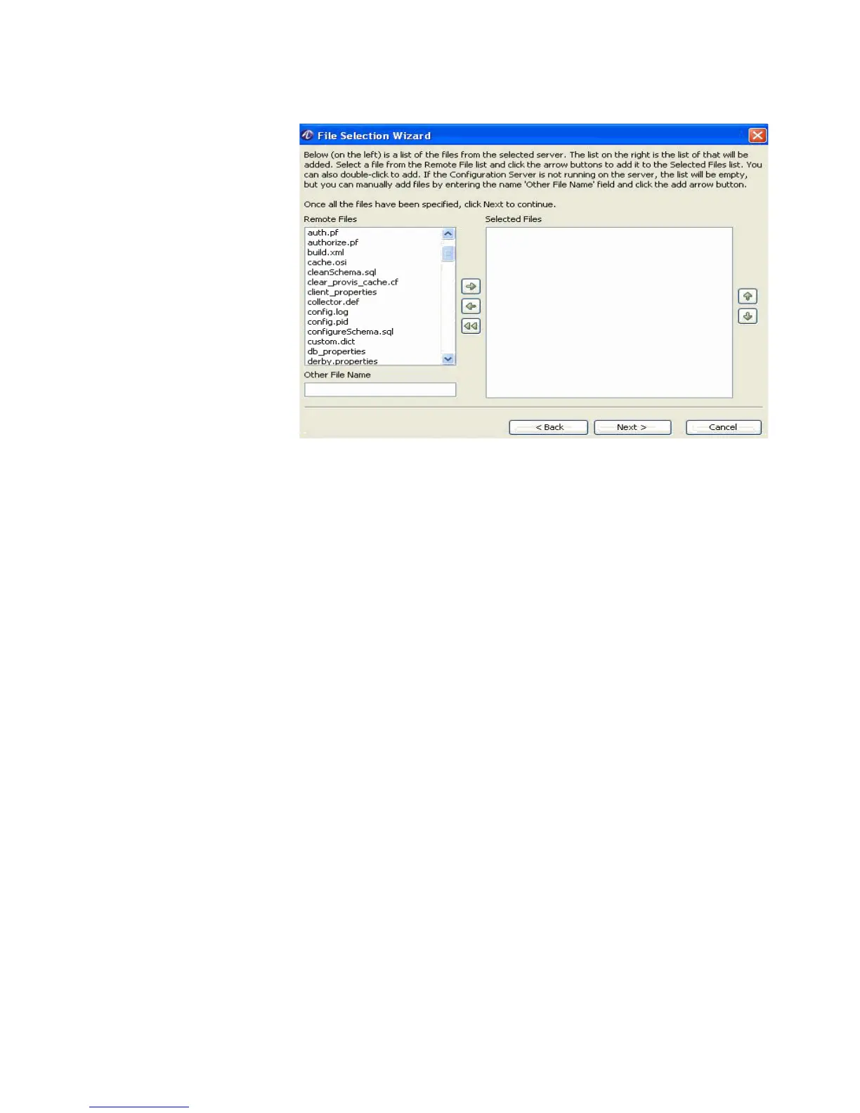 that will be added. Select a file from the Remote File list and click the arrow buttons to add