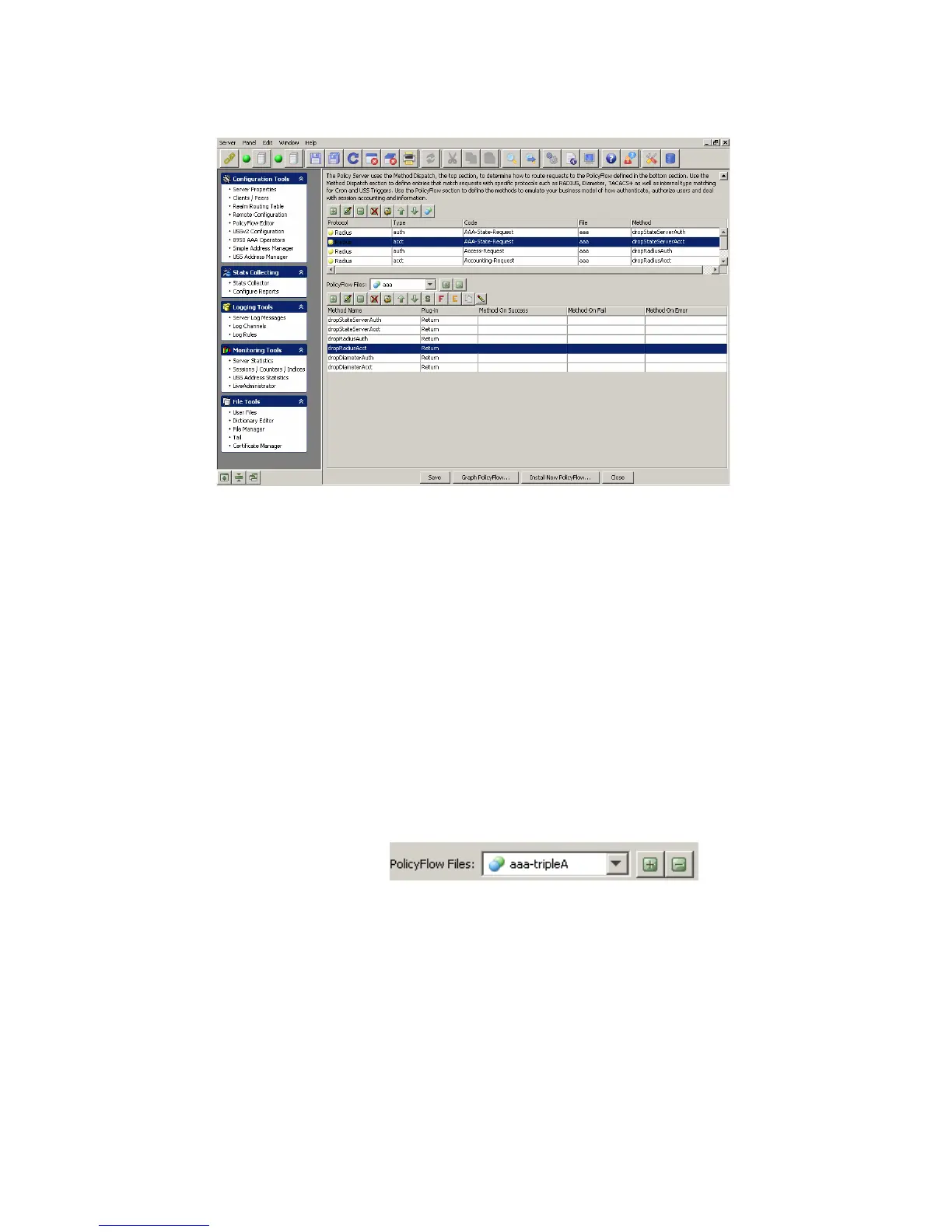 This section is used to add or delete PolicyFlow Files. The Method Configurations that are