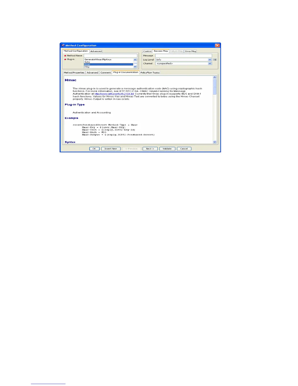 Figure 8-9 Method Configuration pane - Success Msg tabl