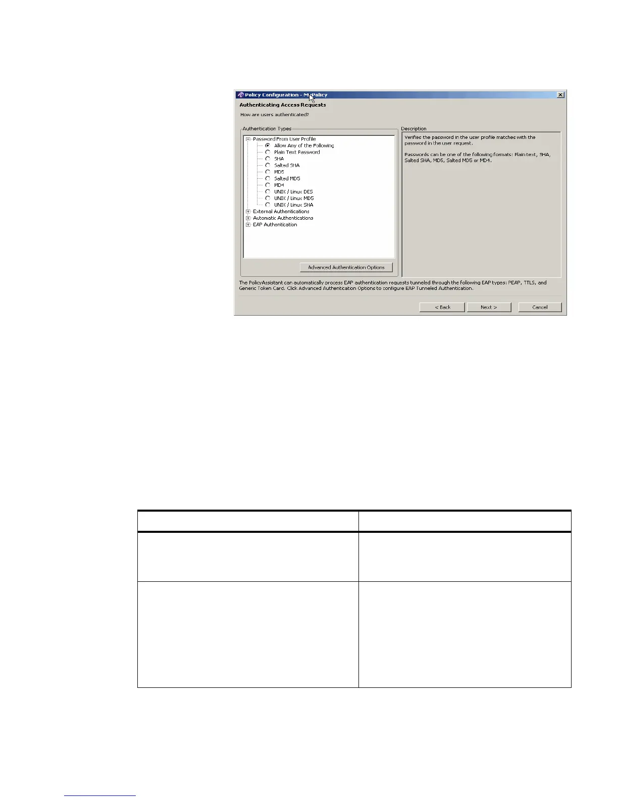 Figure 9-5 Authentication Access Requests Panel in the Policy Wizard