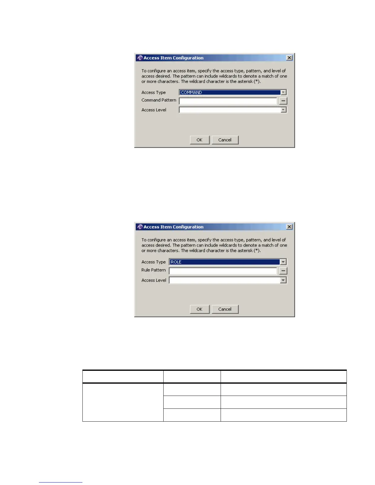 Figure 11-12 Access Item Configuration Dialog–Role Access Type