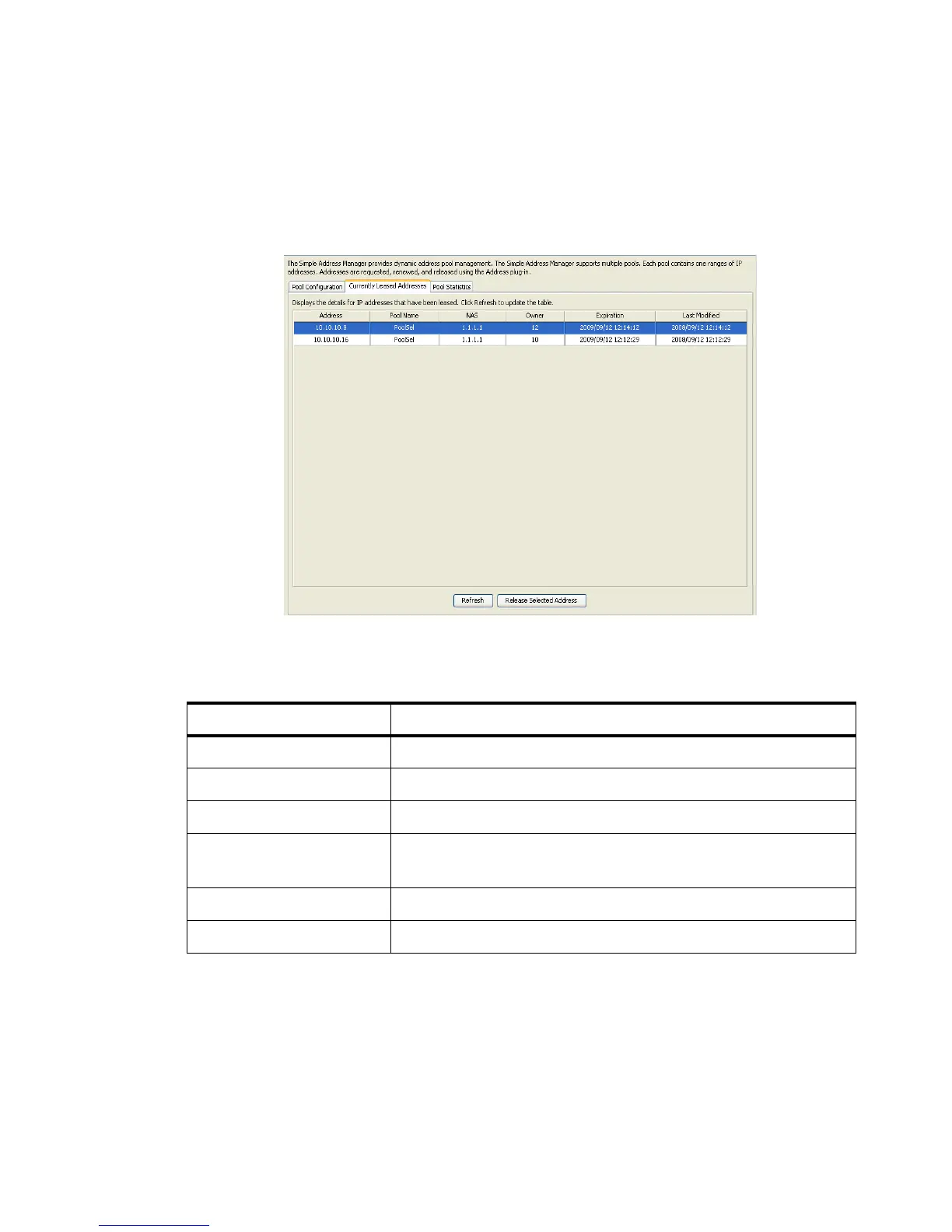 Figure 12-6 Simple Address Manager–Currently Leased Addresses tab
