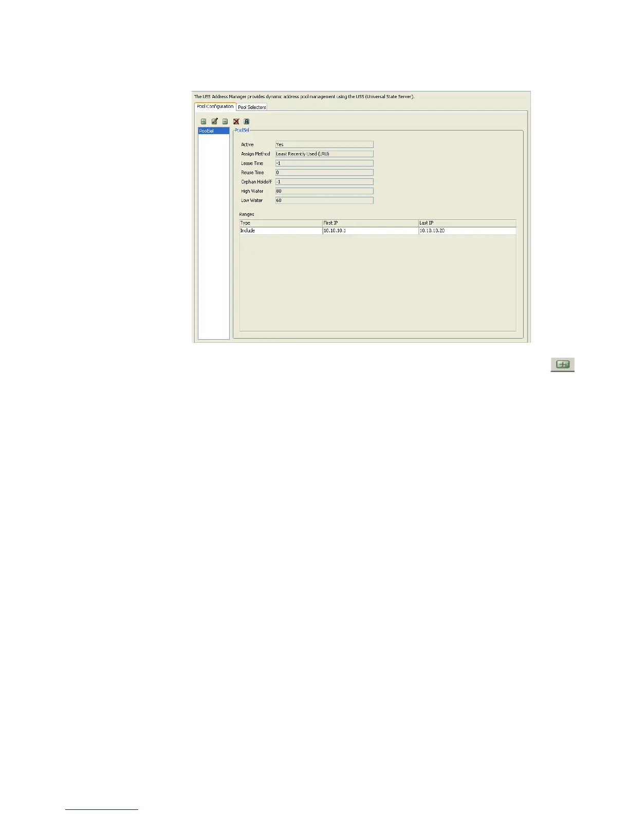 On the USS Address Manager panel, click the Pool Configuration tab. Click on the