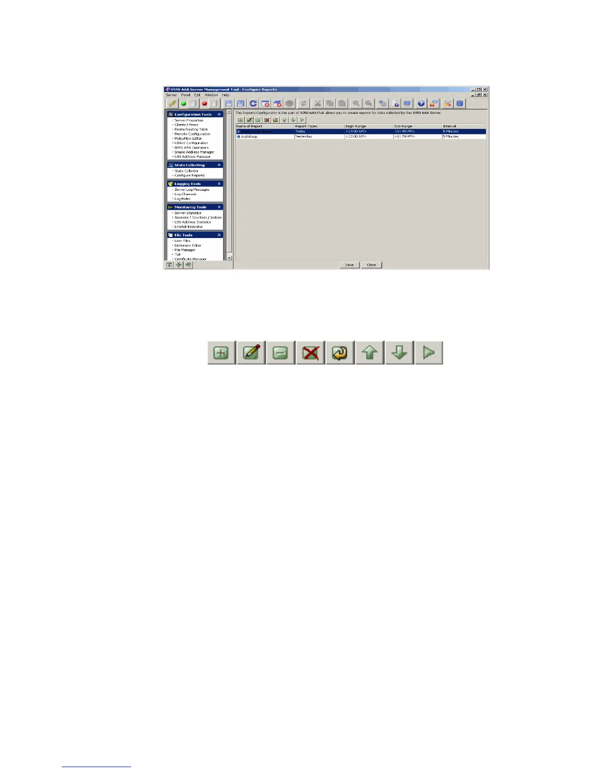 Figure 15-3 Configure Reports Panel– Action buttons