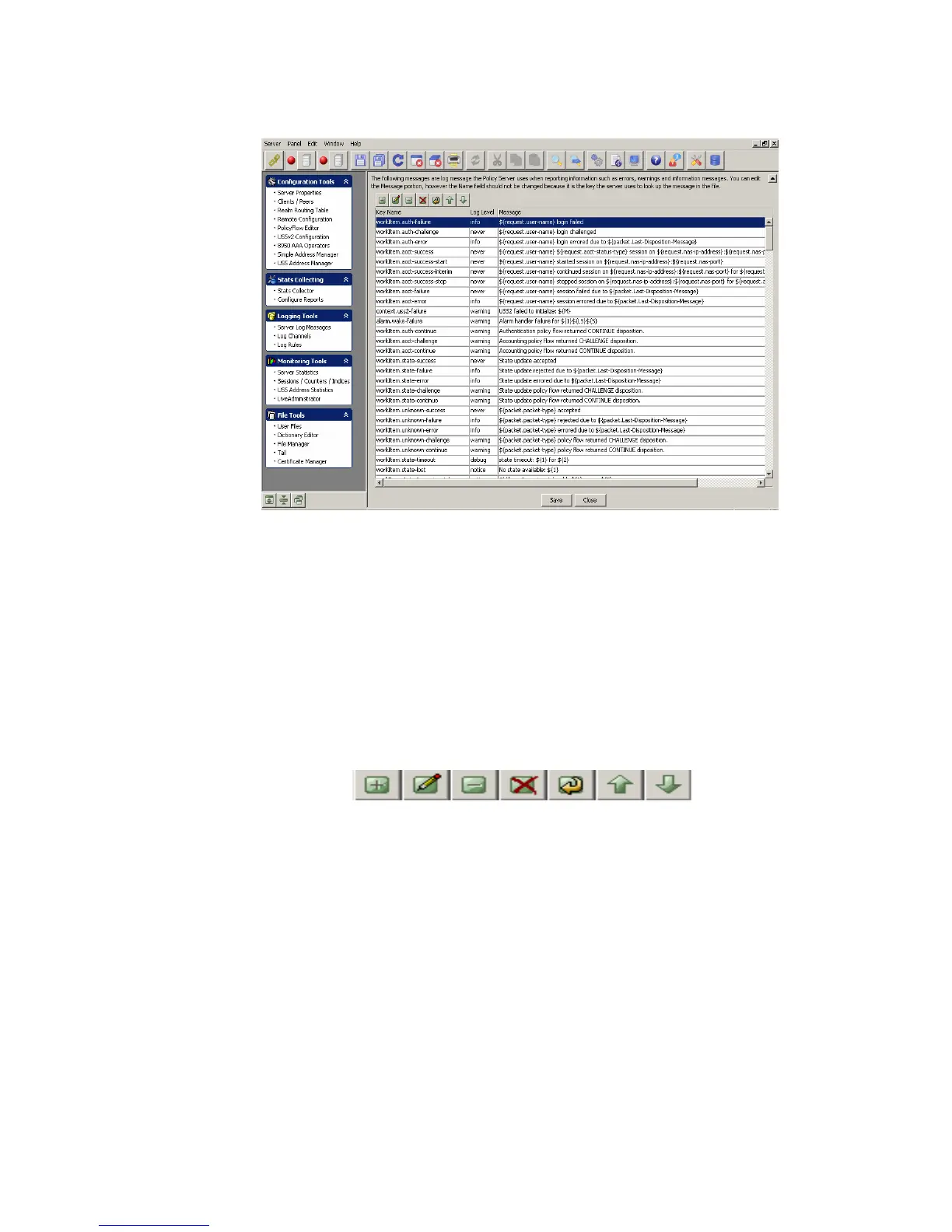 The messages displayed are log messages the Policy Server uses when reporting