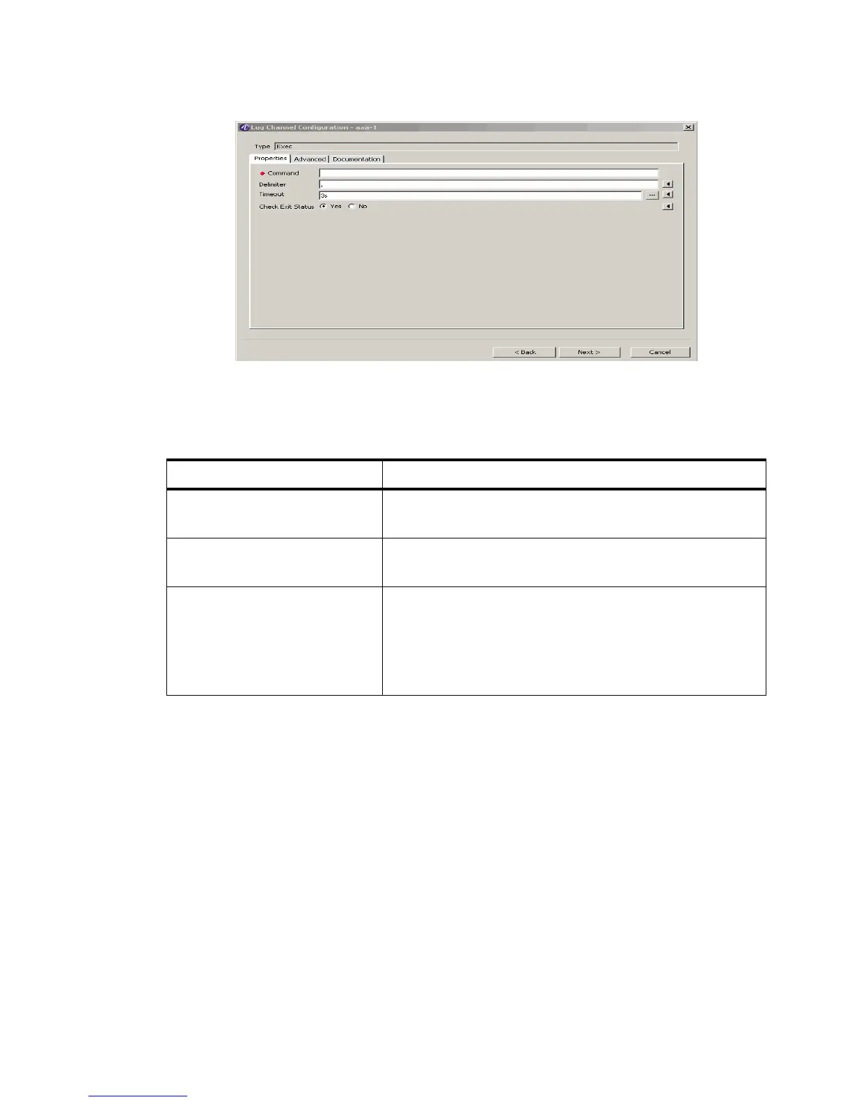 Table 16-5 Exec–Properties fields