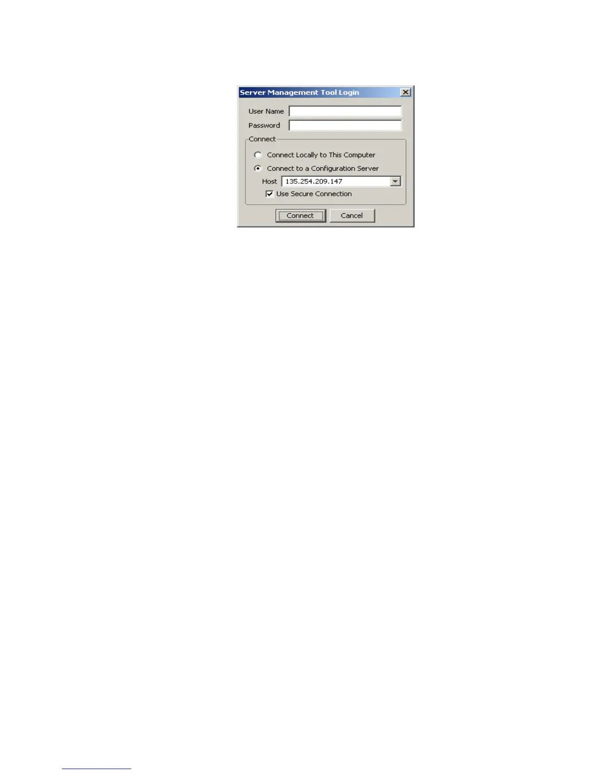 Figure 2-3 SMT Login Panel–Connecting to Configuration Server