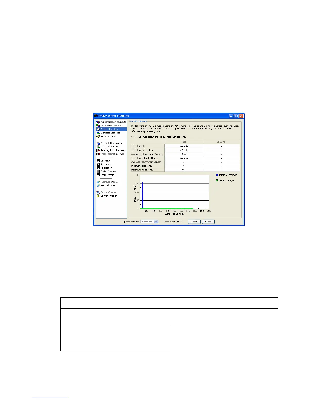 of packet samples (horizontal scale) against packets per update interval (vertical scale).