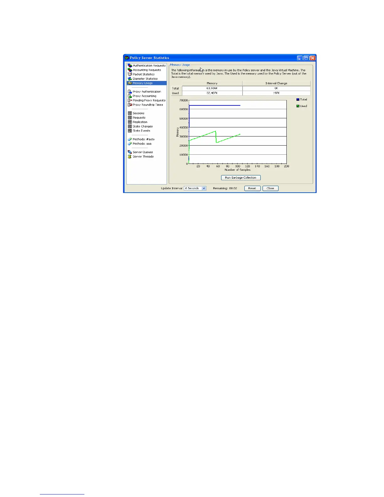 (JVM) and the amount of memory currently in use by the 8950 AAA within the JVM.