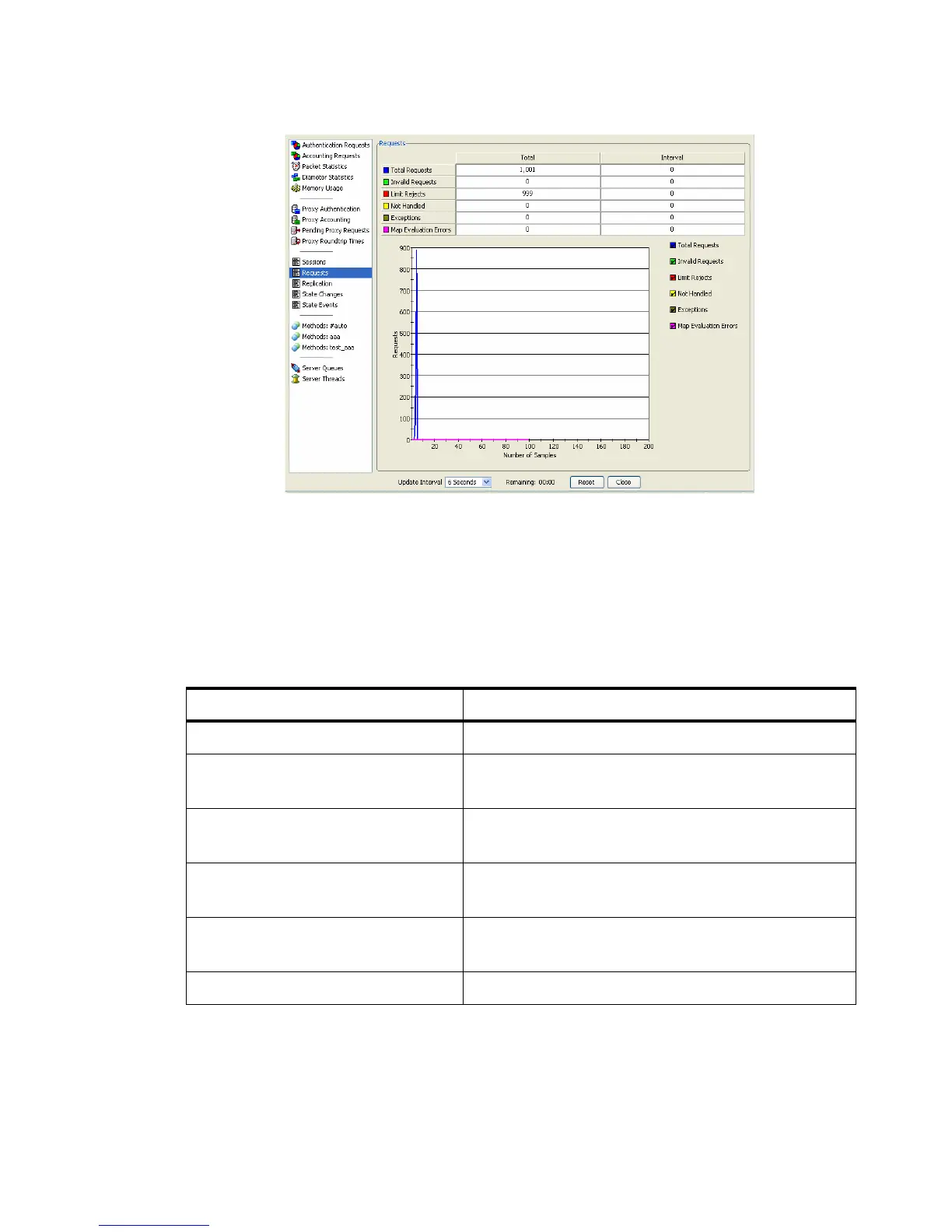 It provides tabular data regarding different requests to the State Server. Data is arranged in