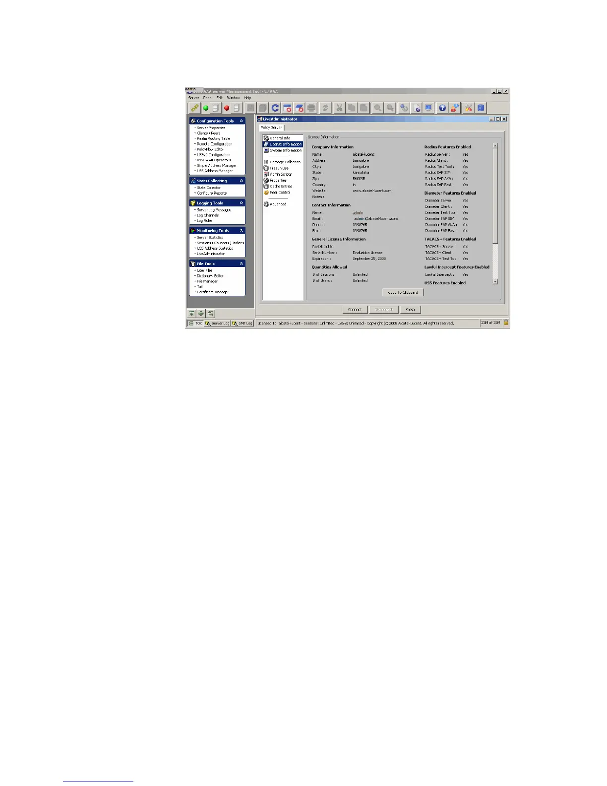 LiveAdministrator panel. Click the Connect button to connect to the Policy server,