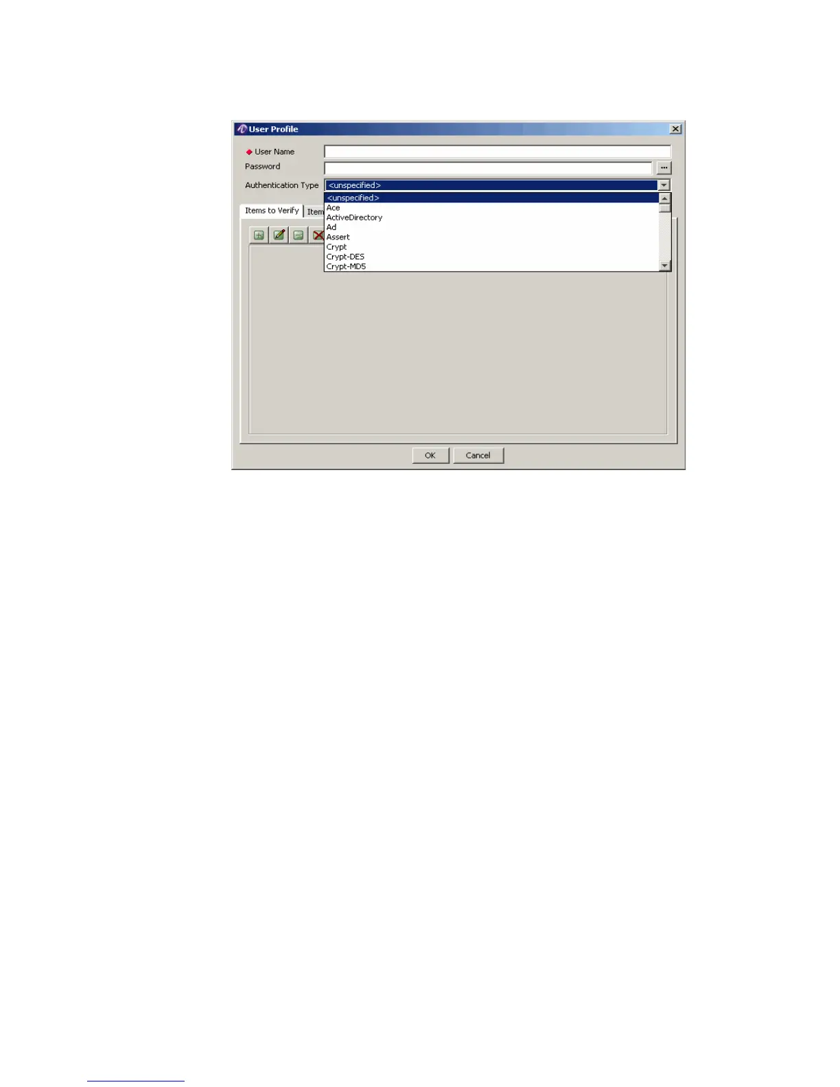 mode, then the Authentication Type attribute, if set, is only visible under the Items to