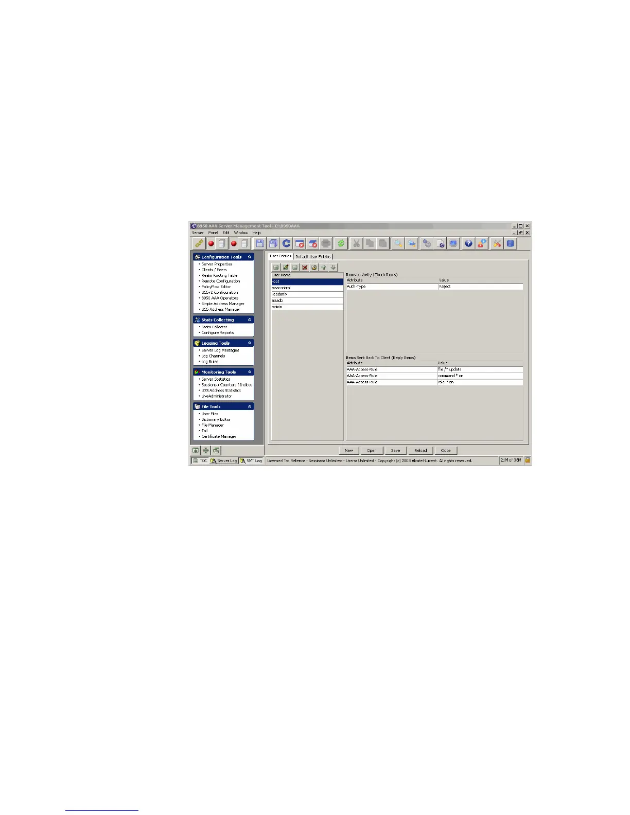 To make changes to the currently running 8950 AAA server, you must click Reload on the