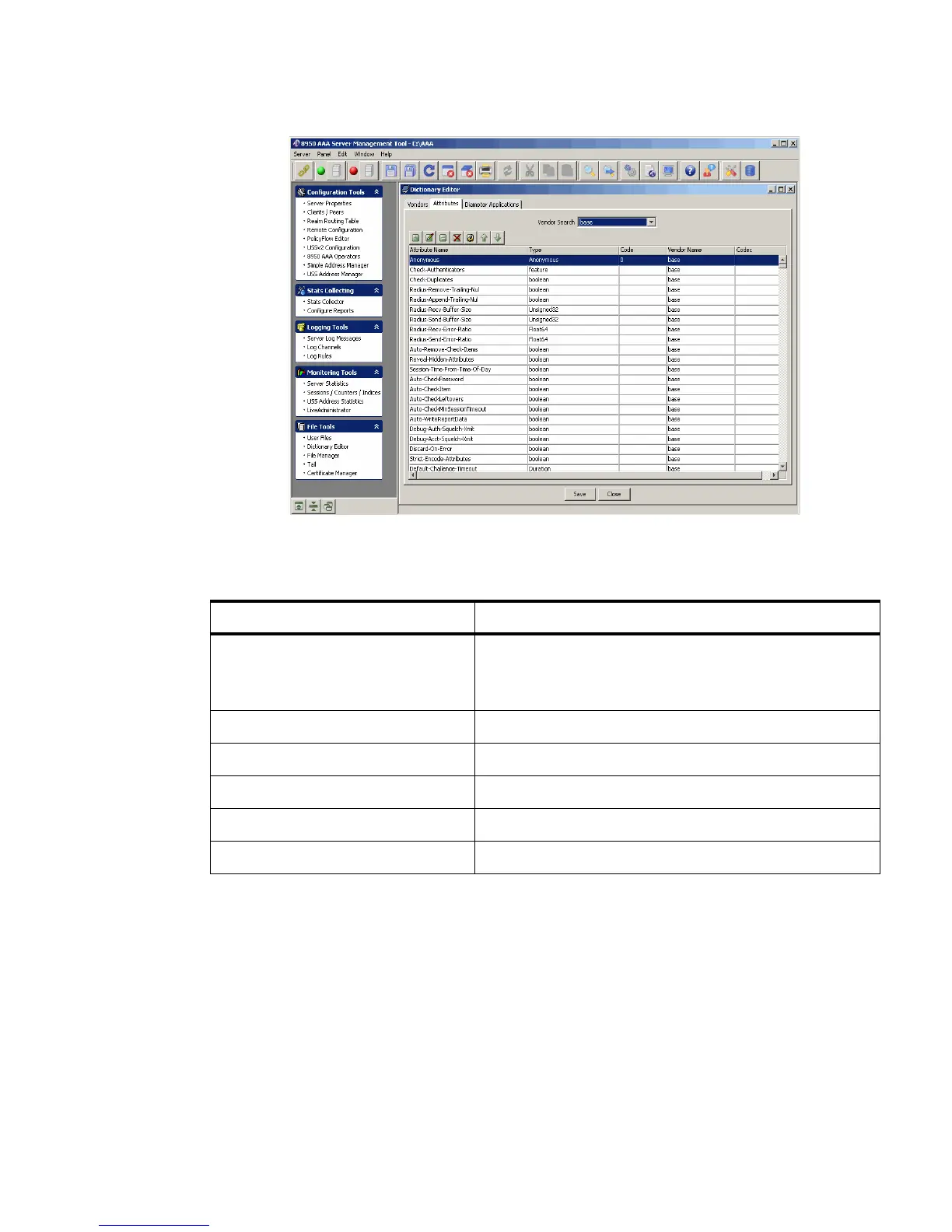 Attributes Tab8950 AAA Dictionary Editor