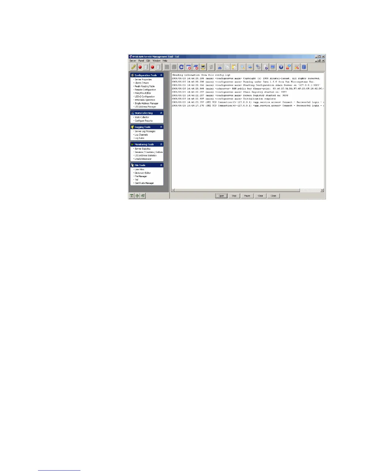 4. You can Start or Stop, Pause, Clear, or Close the tail. Select the desired option.