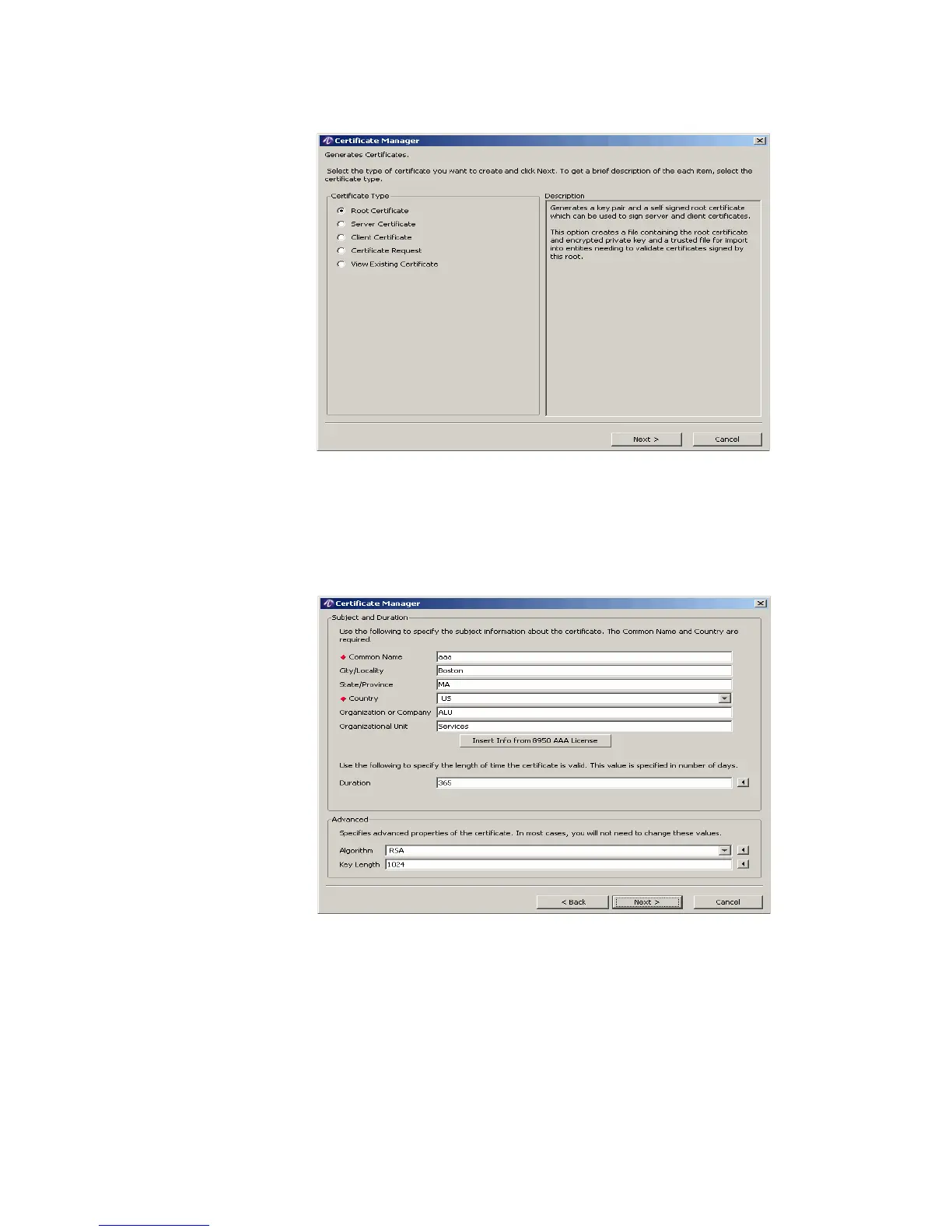Figure 22-11 Root Certificate Type–Subject and Duration