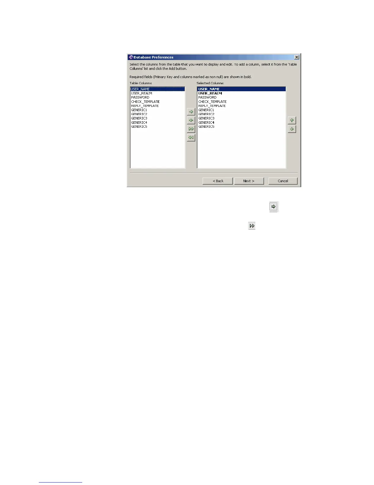 2. Use this window to determine the table columns to be displayed. To do this, select a