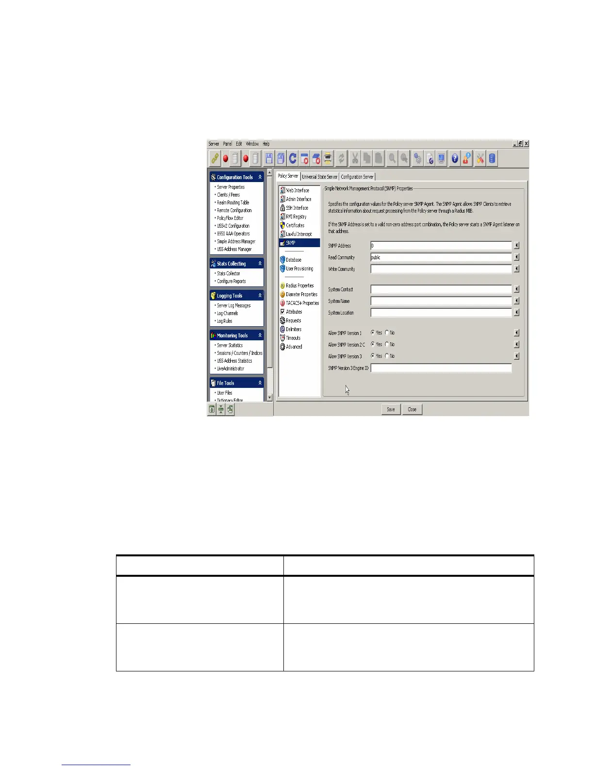 Figure 4-7 Policy Server–SNMP Properties Panel