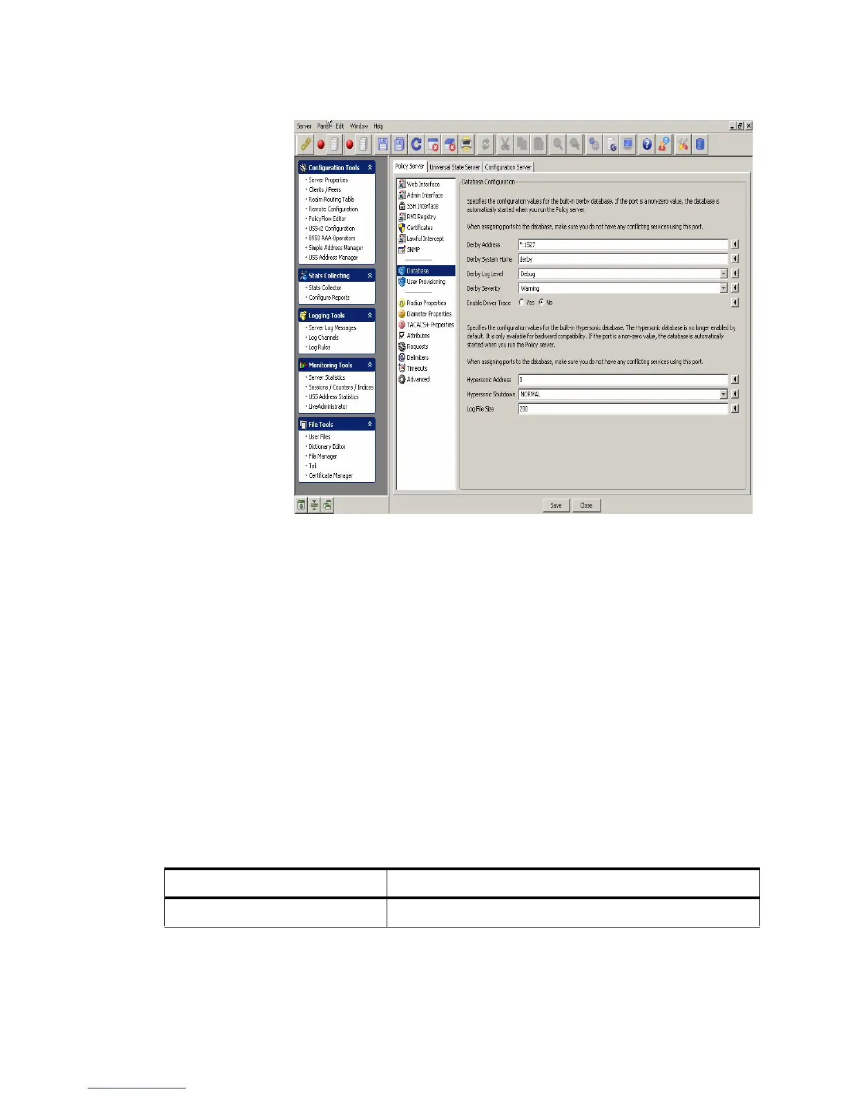 This panel also specifies the configuration values for the built-in Hypersonic database.