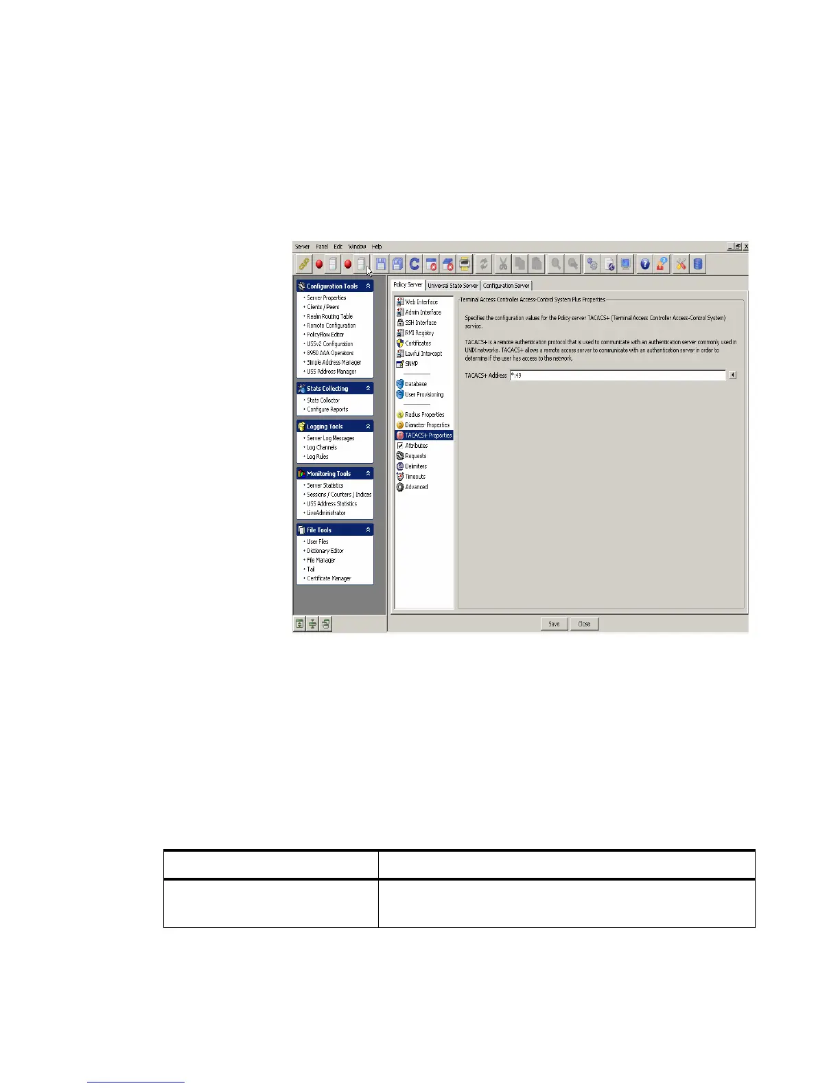 TACACS+ Address Specifies the listener address that the policy server uses for