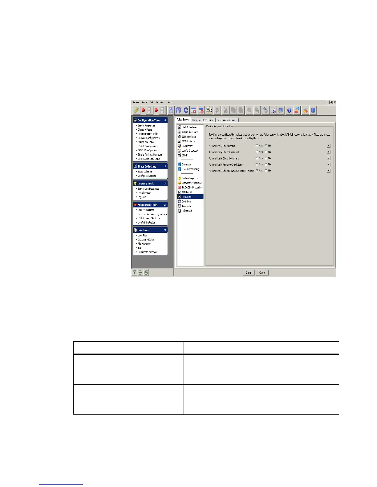 Figure 4-14 Policy Server–Radius Request Properties Panel