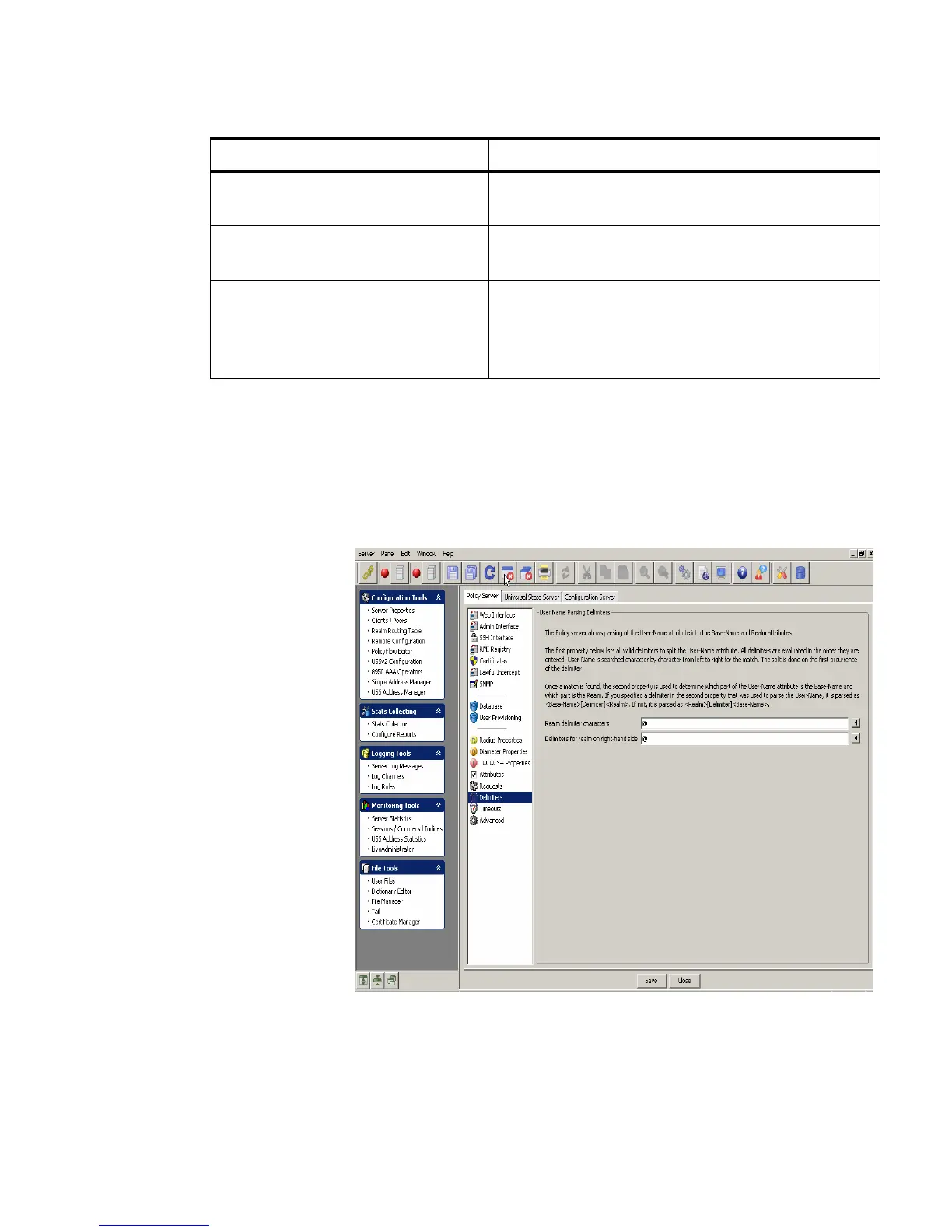 Figure 4-15 Policy Server–User Name Parsing Delimiters Panel