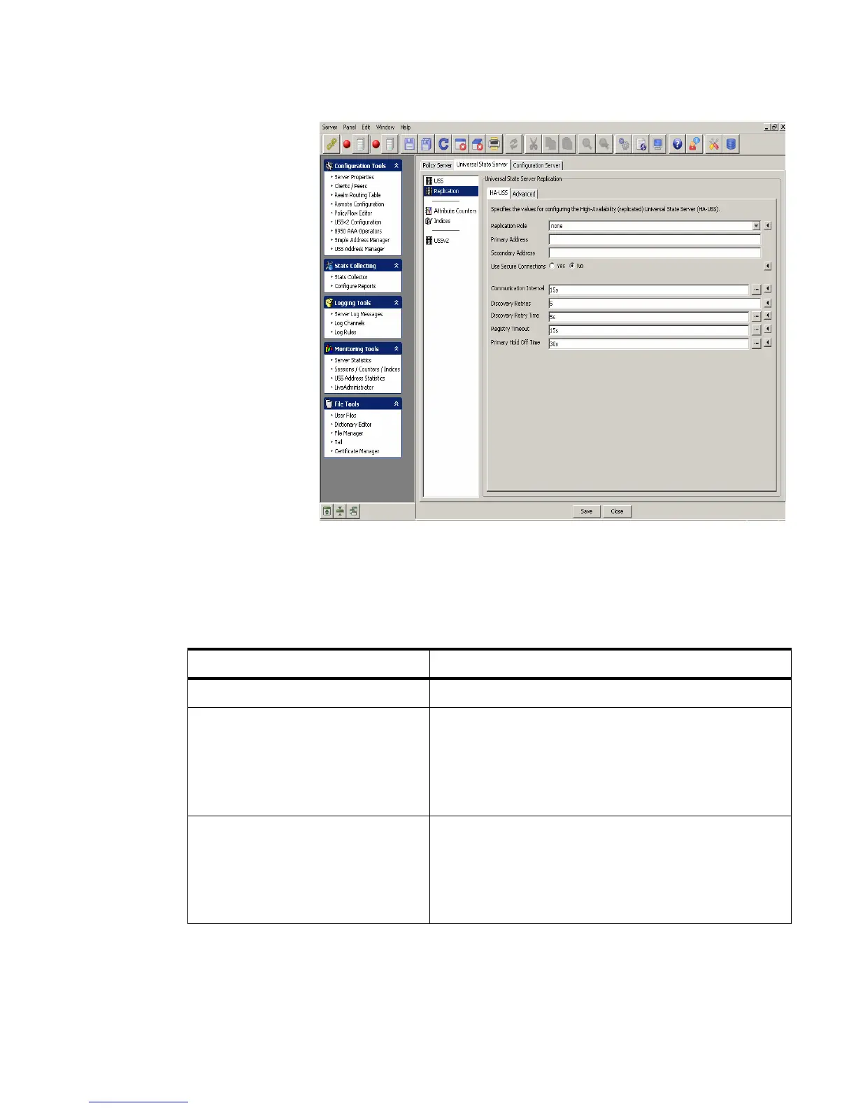 Table 4-19 Universal State Server Replication Panel–HA-USS tab properties
