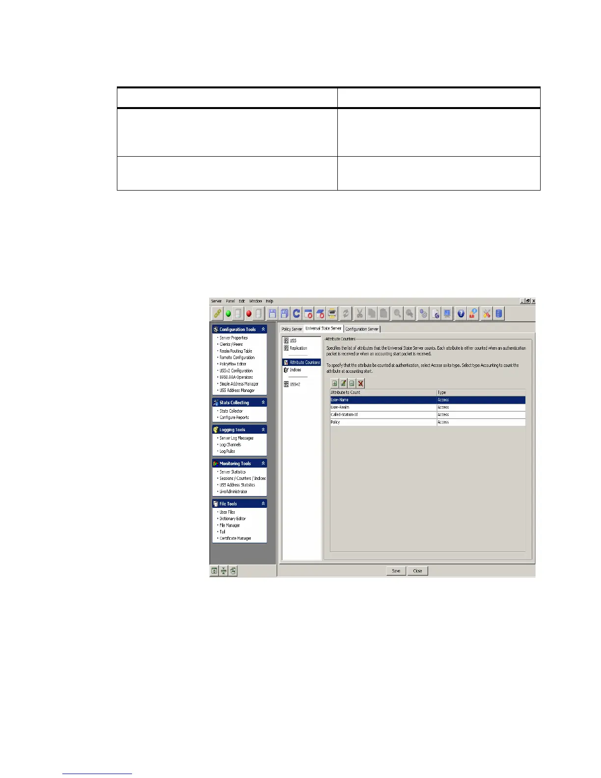 The Attribute Counters panel specifies the list of attributes that the Universal State Server