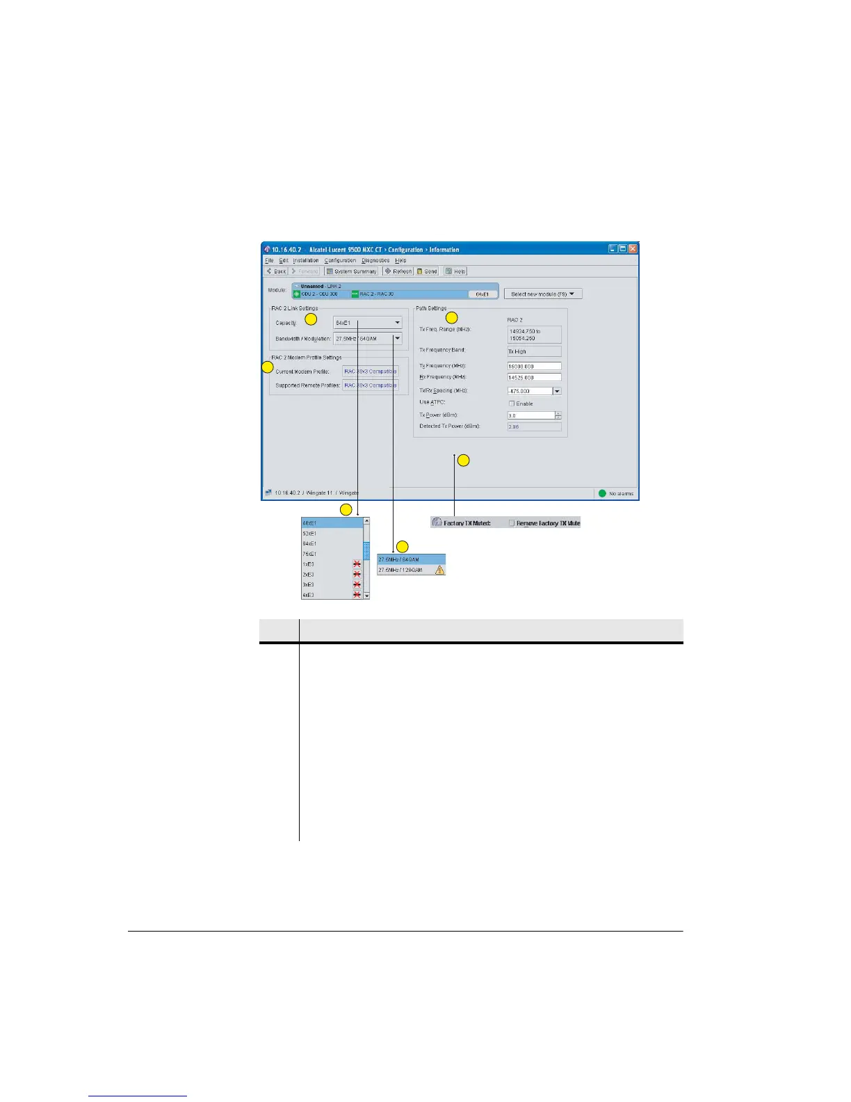 1 Select and set link capacity and bandwidth/modulation from drop-down menus.