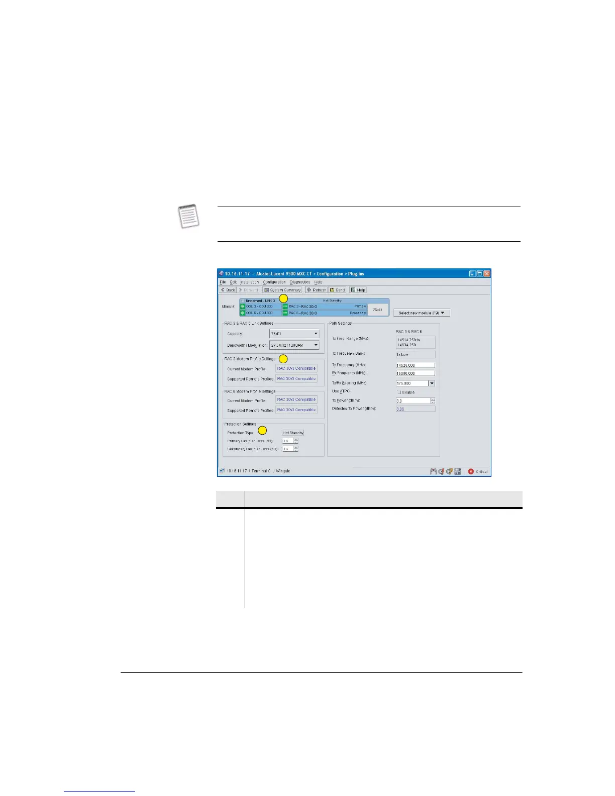 Figure 7-4. Example Plug-ins Screen for a Protected Hot Standby Link