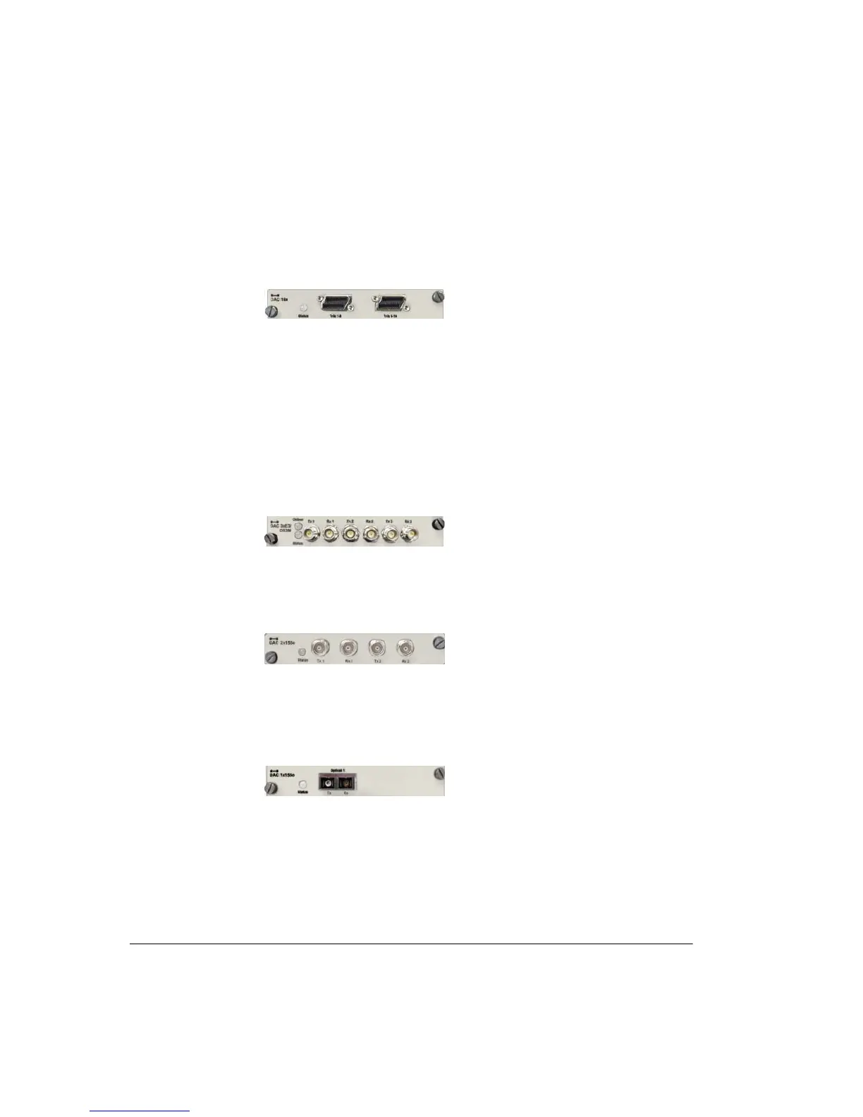 DAC 2x155e supports two STM1 electrical tributaries on BNC connectors.