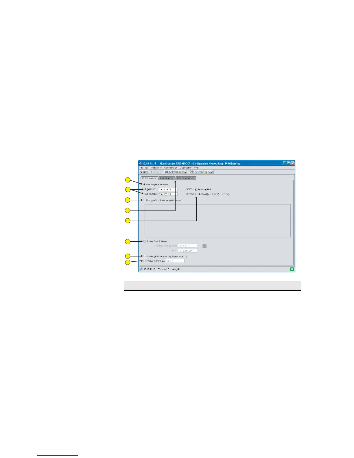Figure 10-1 shows a typical IP Addressing screen. The example shows entry of a
