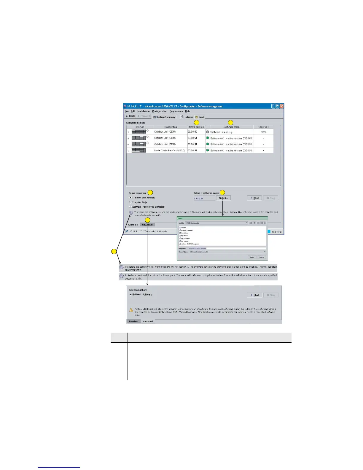 2 Shows the active software versions (ODUs and NCC/Control Module).