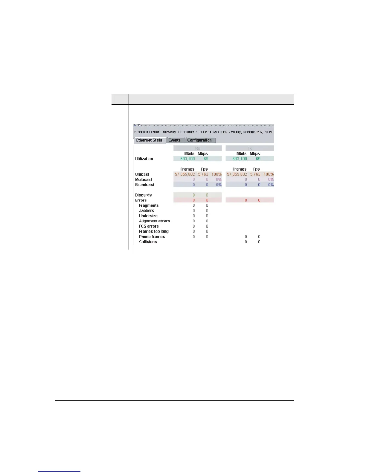 4 Ethernet Stats report. Rx and Tx statistics are displayed for the report range