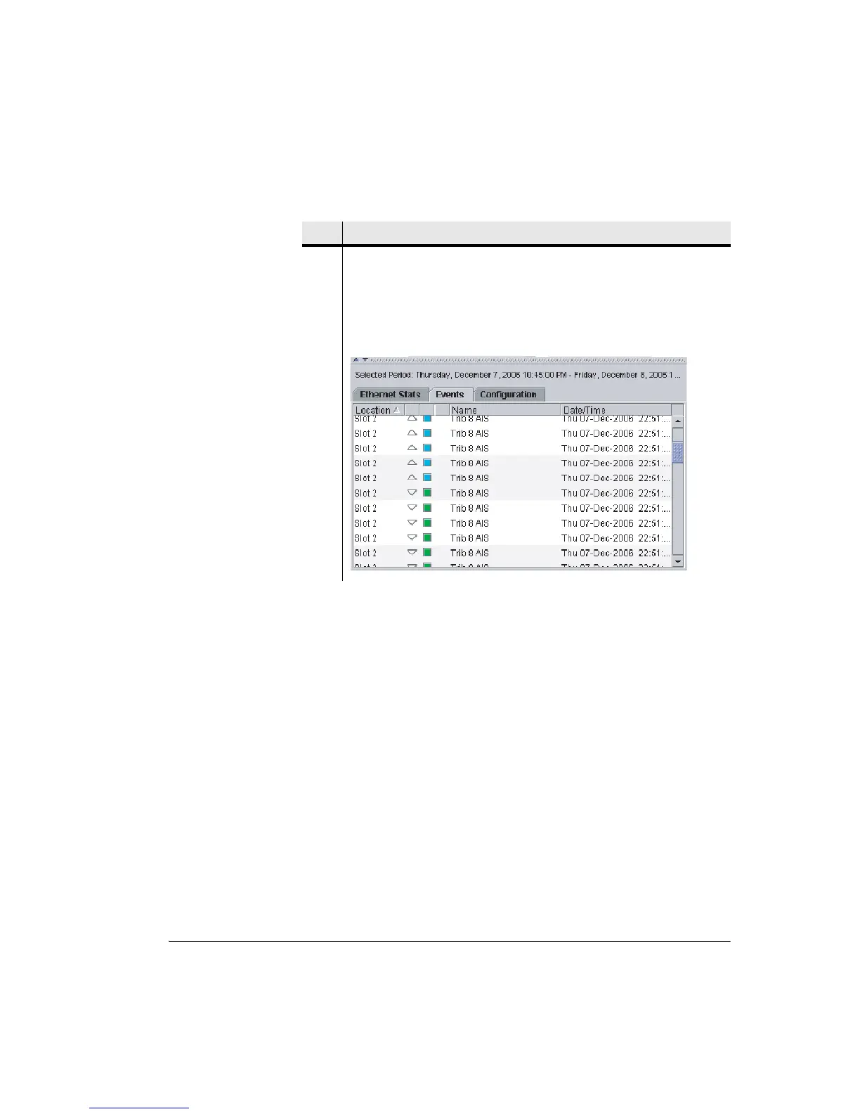 5 Events report. Events are displayed for the report range selected in the Detail
