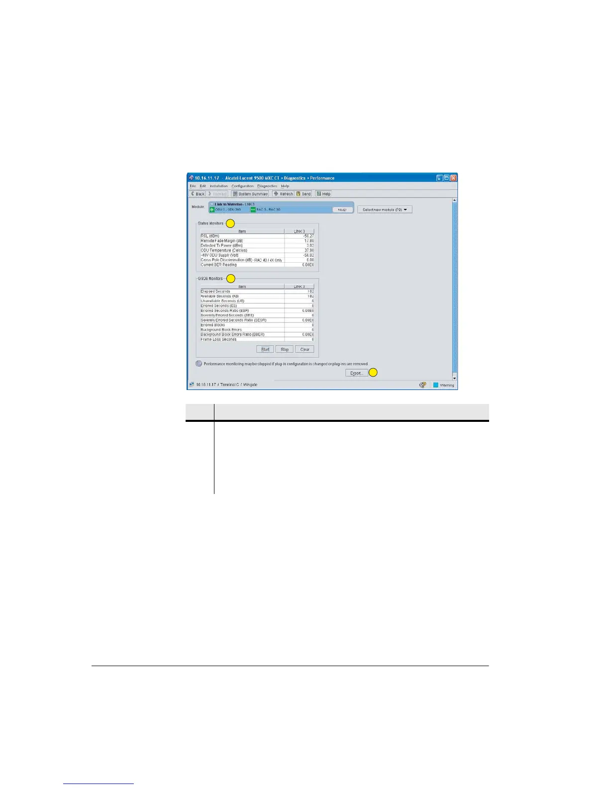 2 G.826 Monitors. Set with the Start, Stop and Clear tabs.