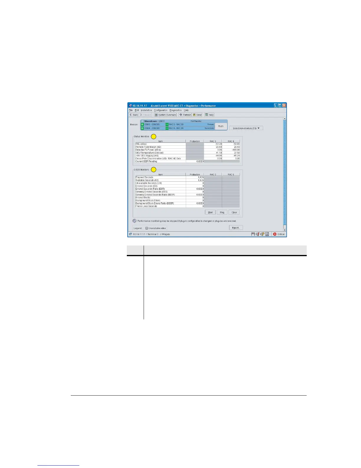 1. Current BER and G.826 statistics are the aggregate for the 1+1 link (the aggregate of the
