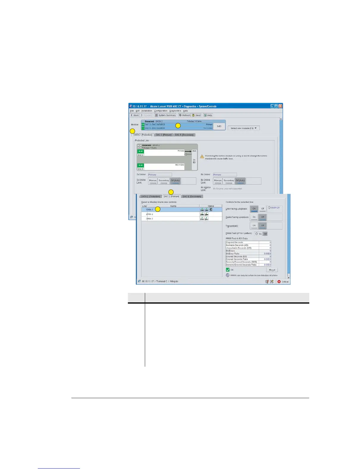 Example illustrates a line (customer) facing loopback set on Trib 1 and its