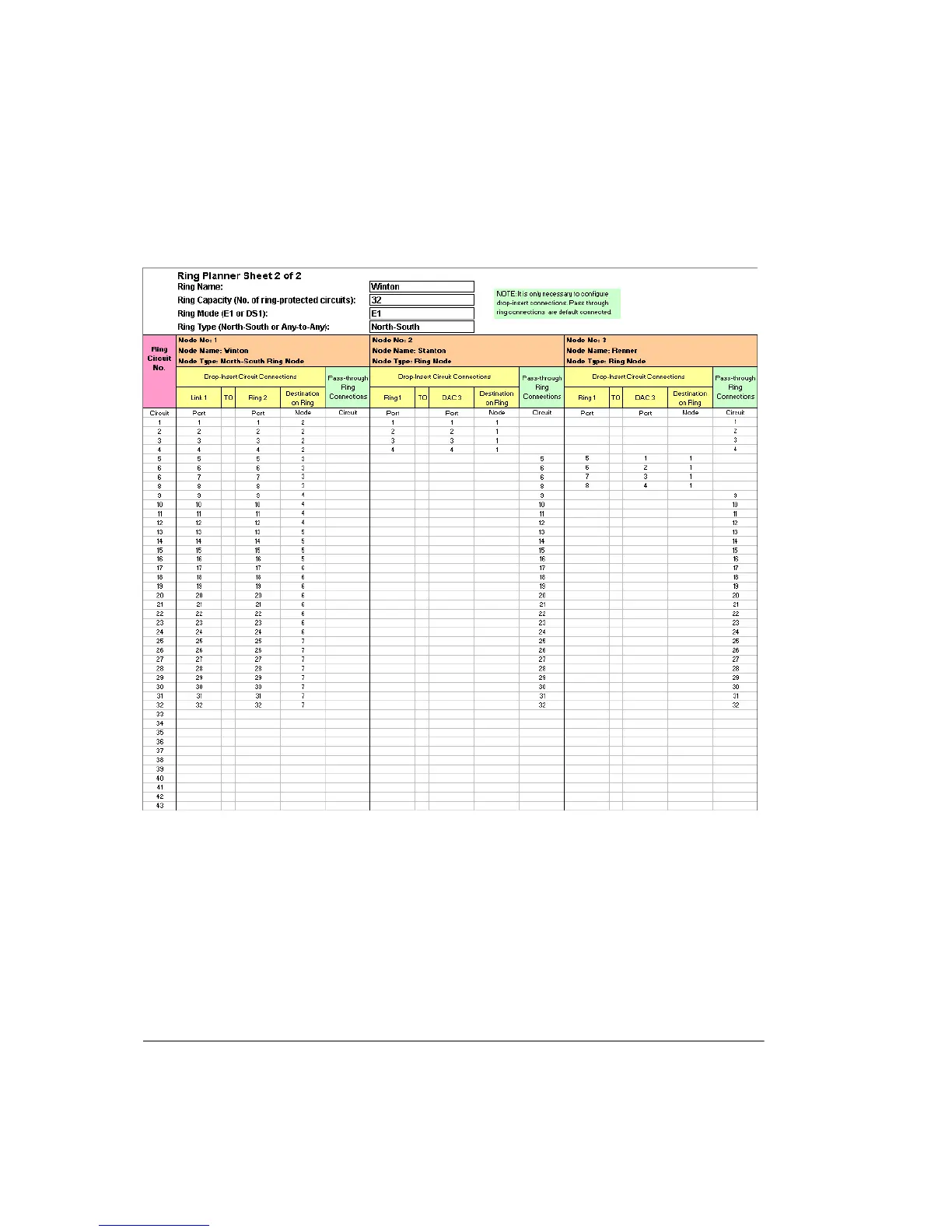Figure A-2. Excerpt from a Circuit Allocation Sheet for the Example Ring in Figure A-1
