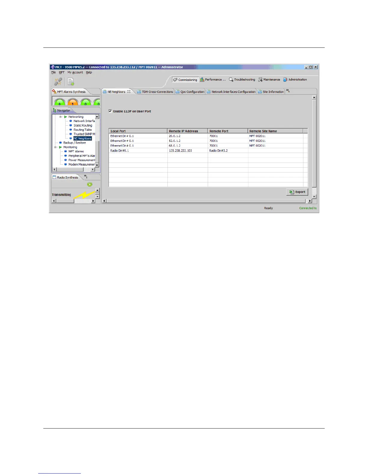 This view contains a table which automatically displays the MPT's radio neighbor's