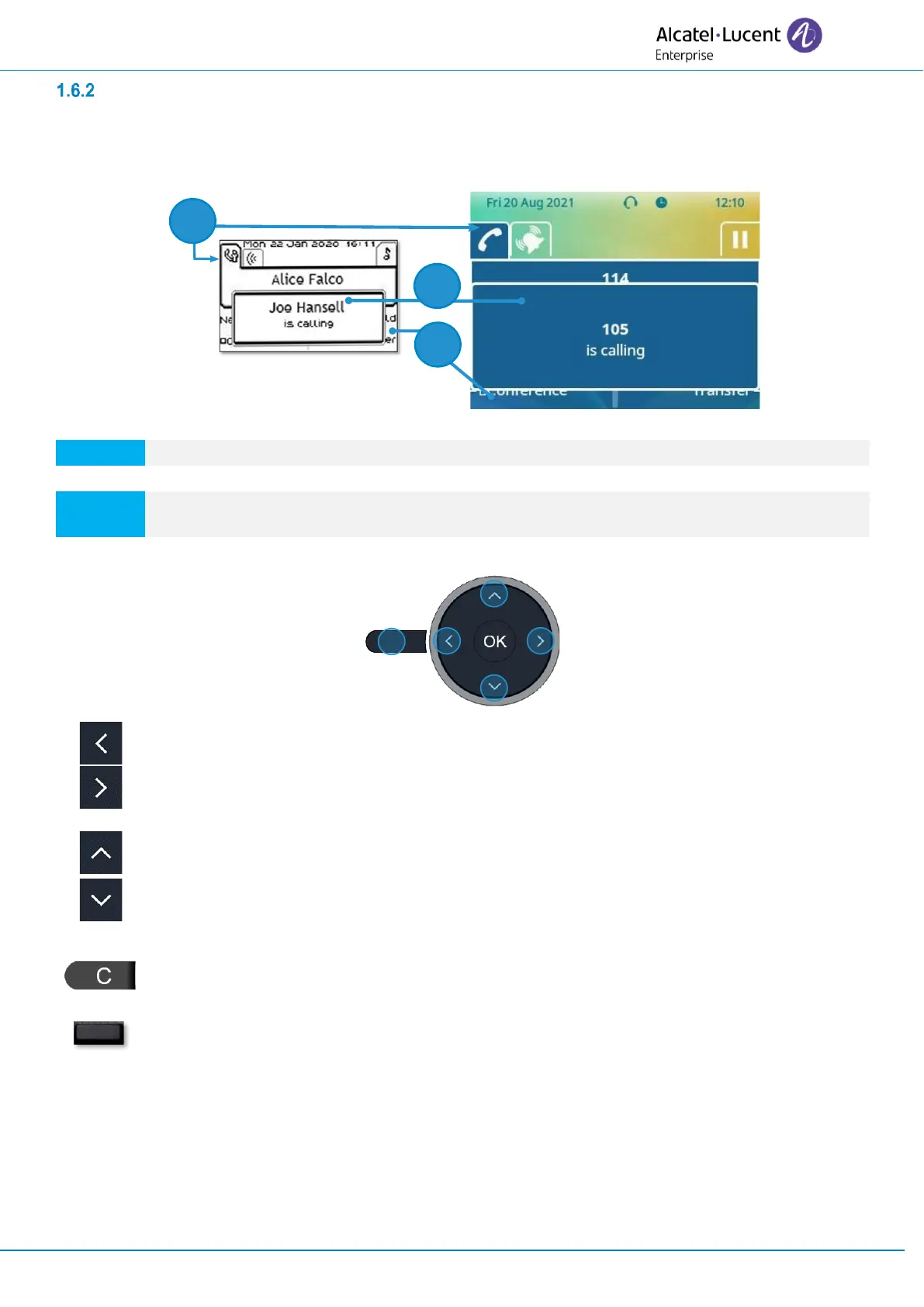 waiting calls are displayed on the different line keys. It is then possible to converse with the contact of your