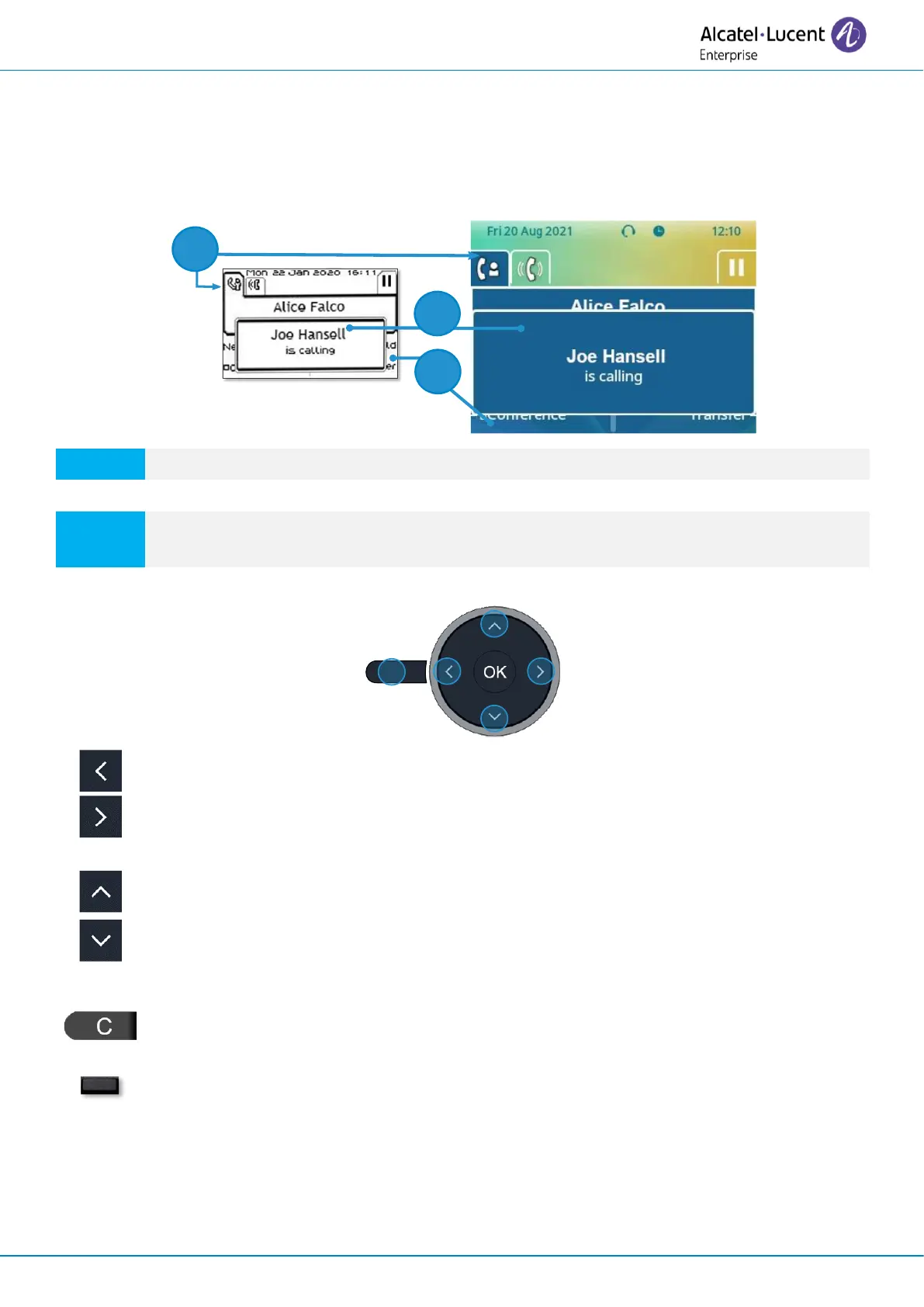 waiting calls are displayed on the different line keys. It is then possible to converse with the contact