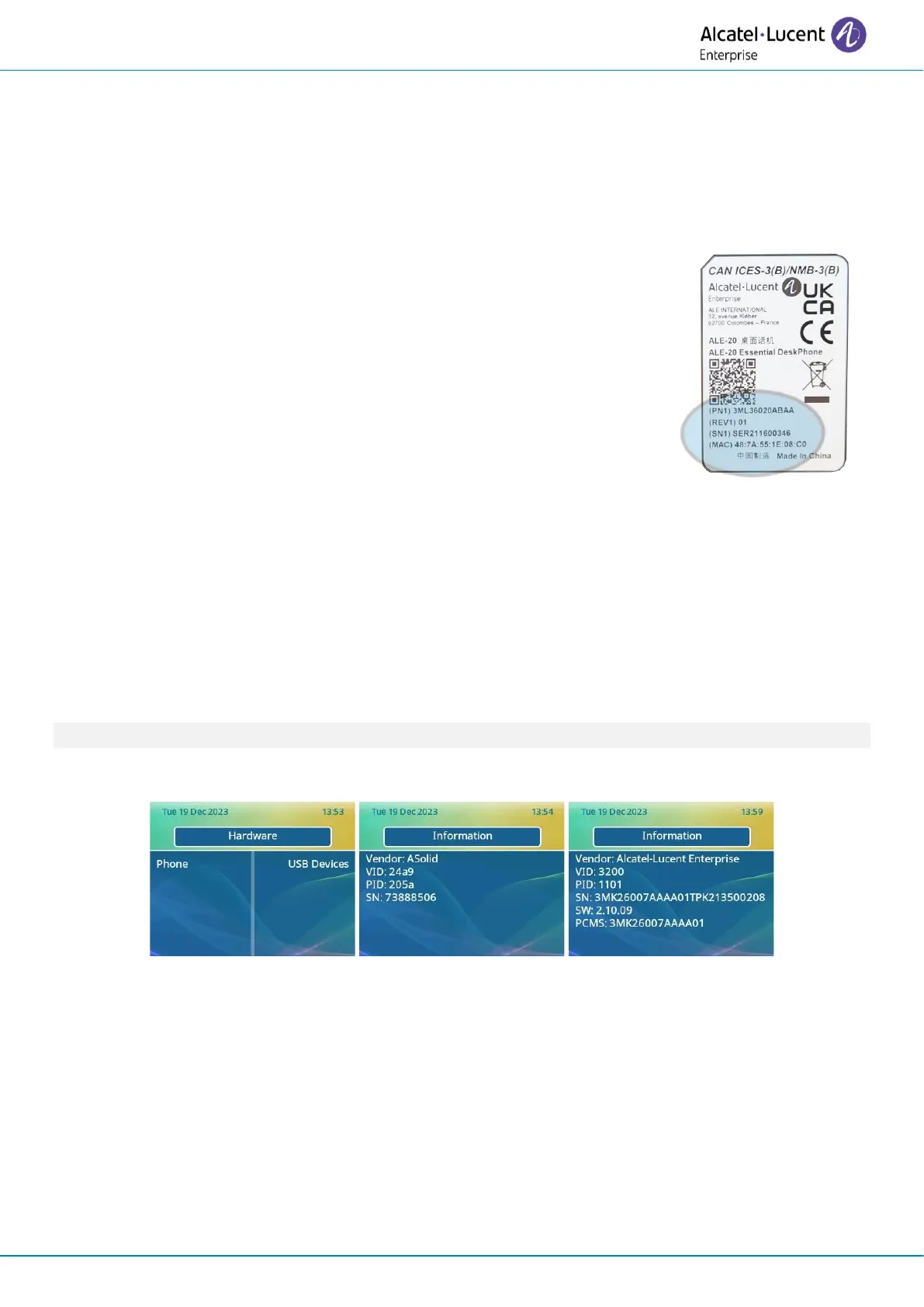 3.20.3 Hardware model details of the desk phone and connected USB devices