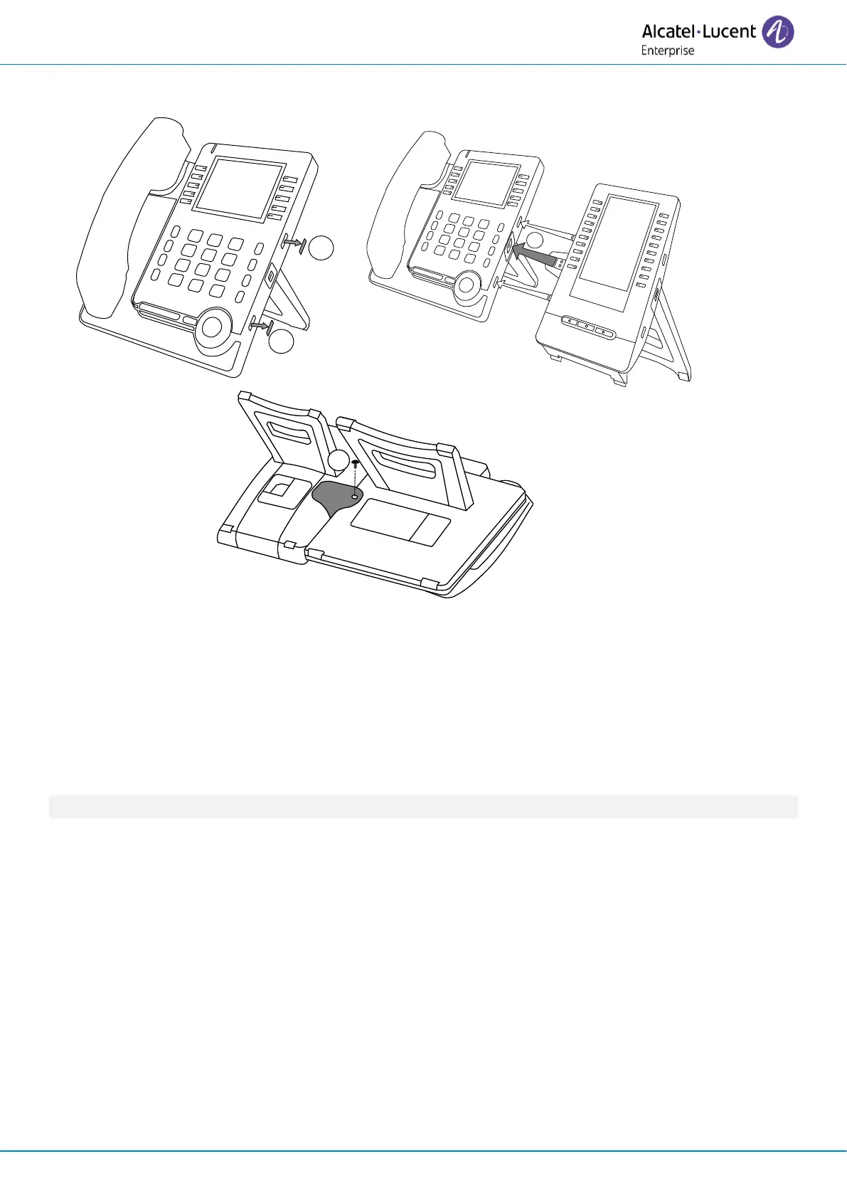• Use the add-on support to fix it to the desk phone using the provided screw. Remove the foot