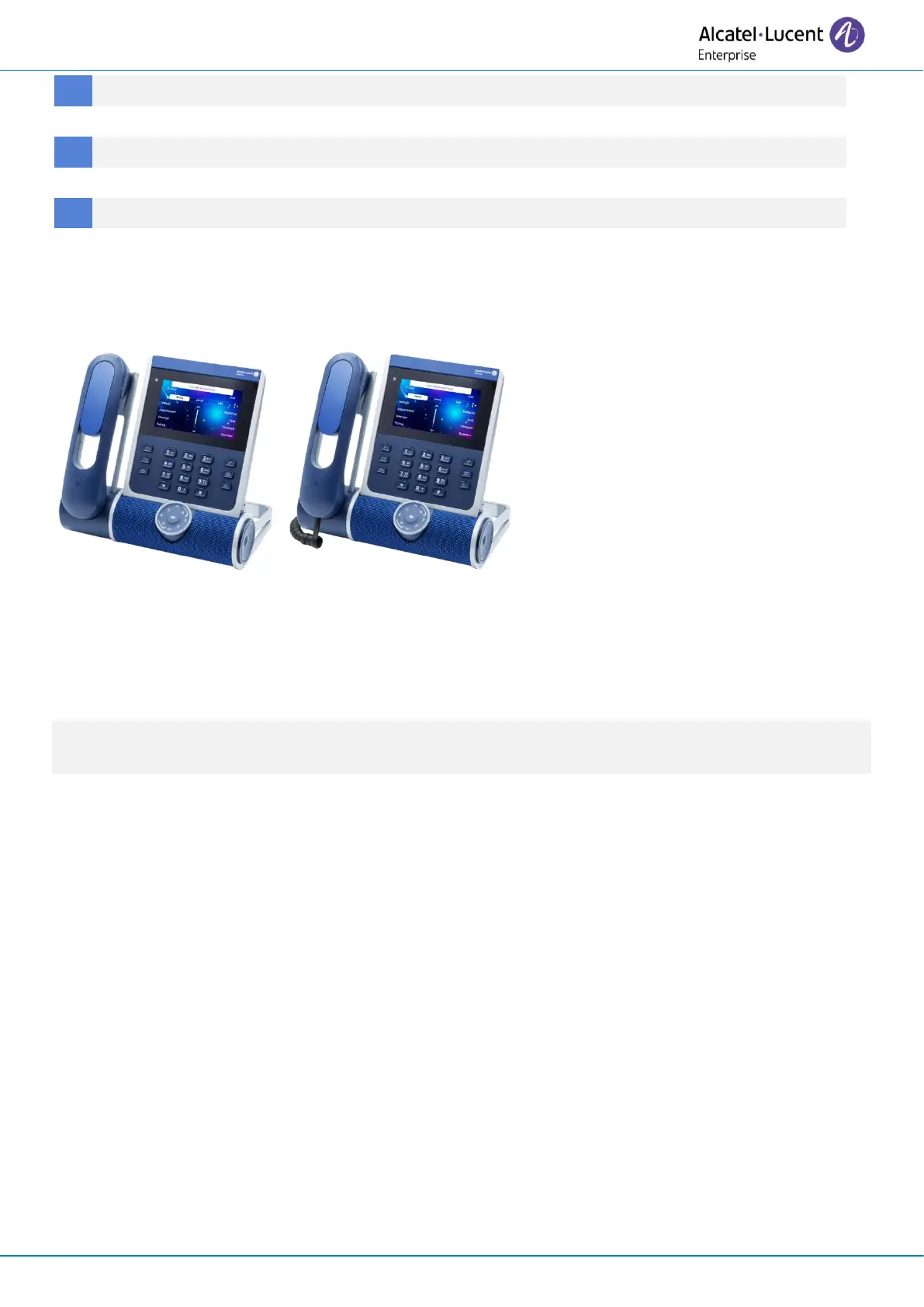 • The desk phone with cordless handset (ALE-400, ALE-160, ALE-108).