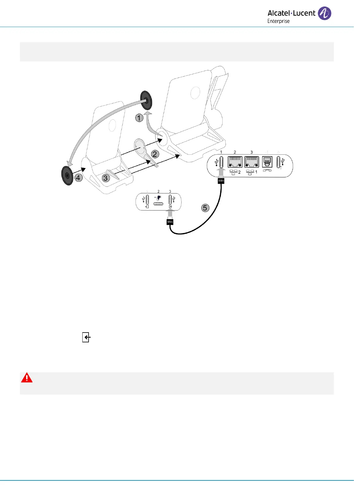 • Fix the add-on to the desk phone by using the provided foot clip.