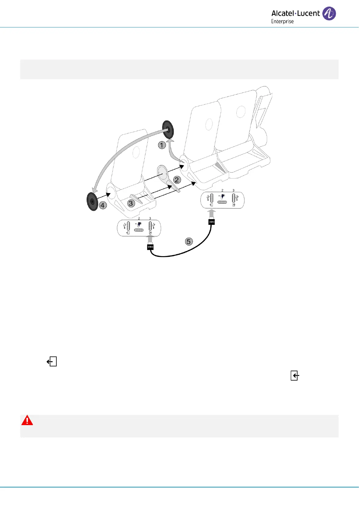 o Remove the cover on the foot of the desk phone or the installed add-on module, on the