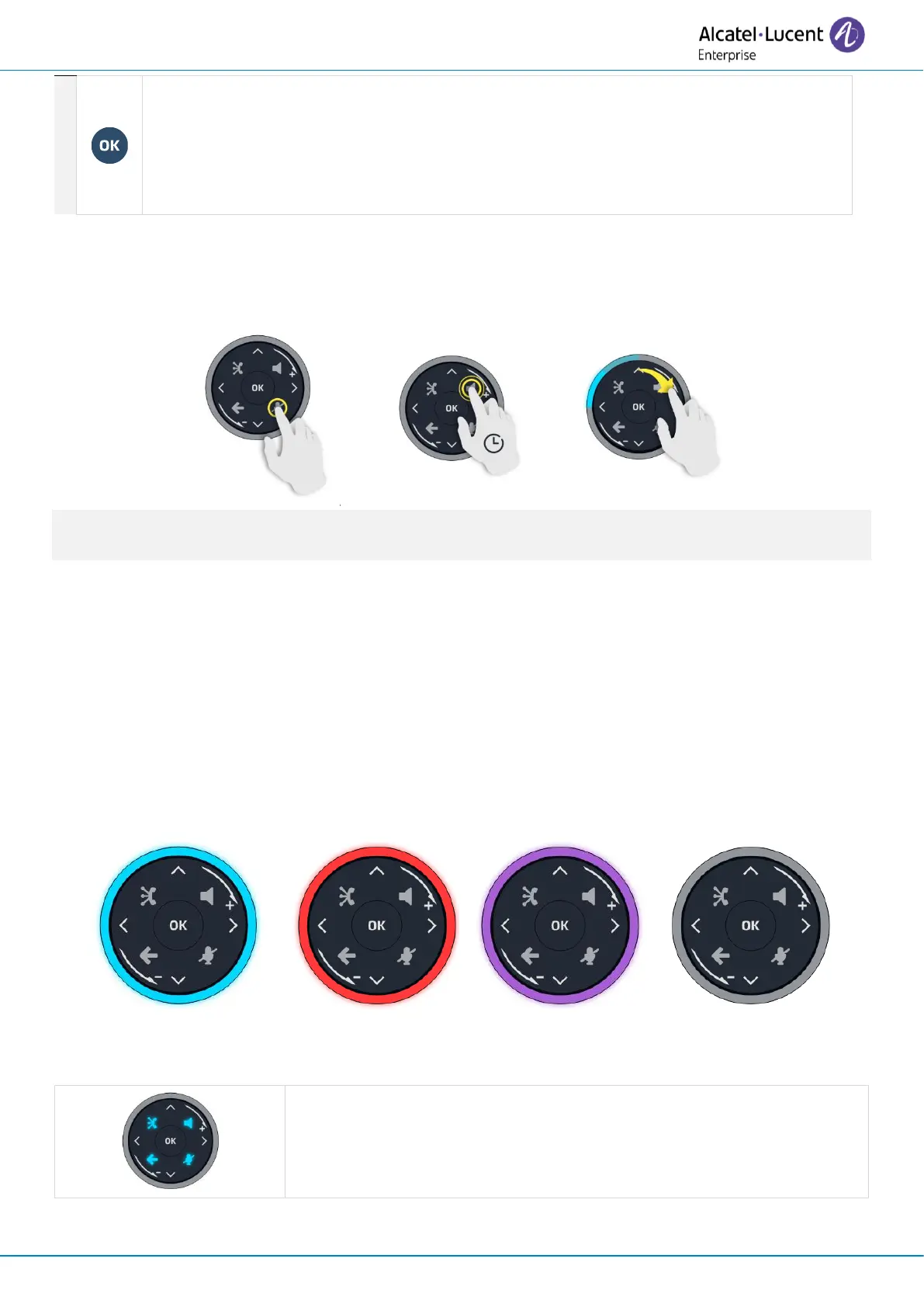 The ring around the Smart Pad and the keys can light up depending on the event. The ring can light