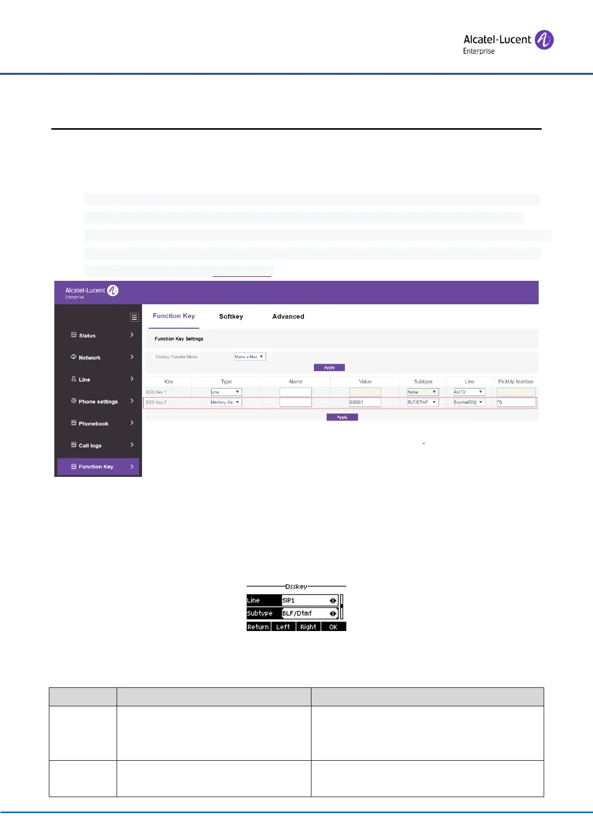 Table 8 - BLF Function Key Subtype Parameter List