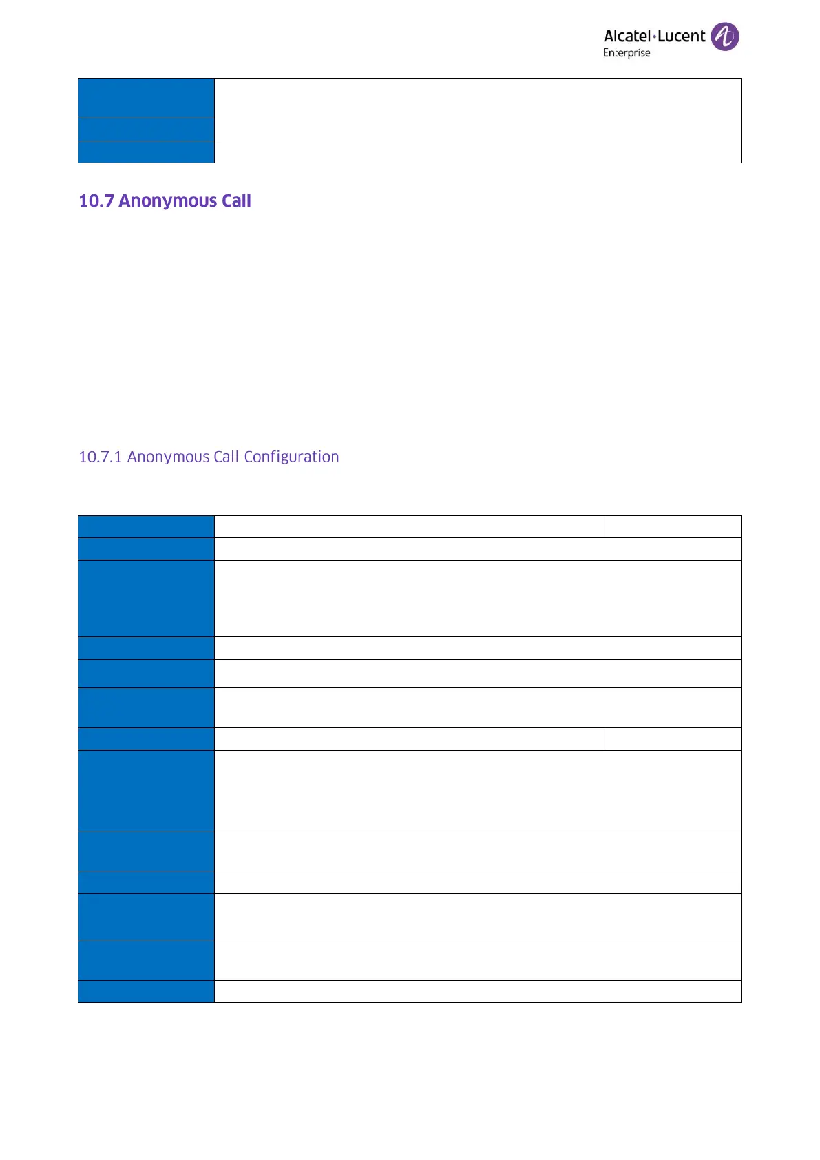 The following table lists the parameters you can use to configure anonymous call.